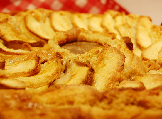 Artesanal y esponjoso batido, relleno con manzanas y nueces, para darle un toque fresco. cubierto con deliciosas manzanas complementando asà su sabor.